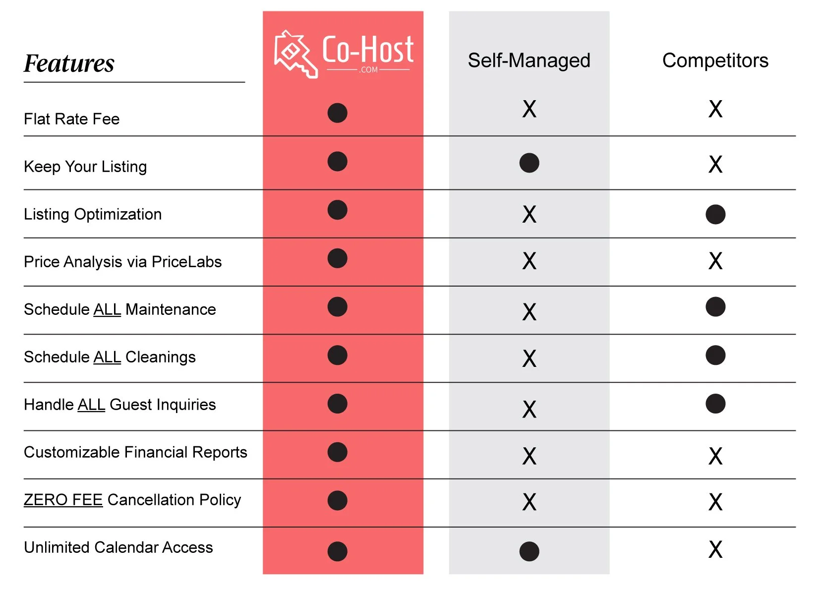 For a flat rate* per month, Co-Host will provide….